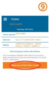 Cliccare nuovamente su “Conferma” e “Paga alla struttura” [9] e [10].
