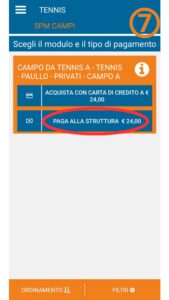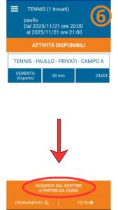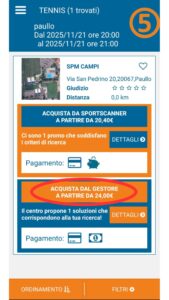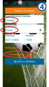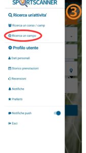 [3] Selezionate “Ricerca un campo” o “Campo” e andando a ricercare tennis/calcio a 5/nuoto libero/palestra.